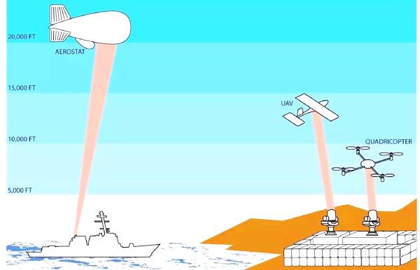 ▲美軍對未來激光充能技術的設想,既可以通過地基激光充能系統(tǒng)為飛行高度在4572米以下的無人機充能,也可以通過戰(zhàn)艦搭載的充能系統(tǒng)為在6096米以上高空飛行的監(jiān)視飛艇充能。