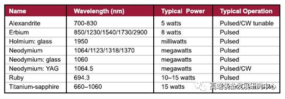 (不同基質(zhì)材料的固體激光器的特點(diǎn))