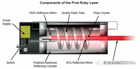 (第一臺(tái)紅寶石激光器由研究物理學(xué)家Theodore H. Maiman于1960年研發(fā))