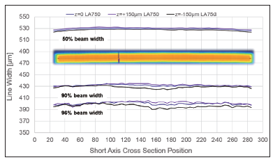 圖3 :750 mm 長(zhǎng)準(zhǔn)分子激光線光束的水平軸和垂直軸的橫截面。