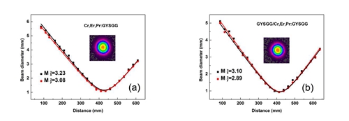 圖3.Cr,Er,Pr:GYSGG和鍵合GYSGG/Cr,Er,Pr:GYSGG晶體的光束質(zhì)量因子M2