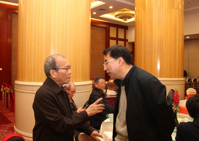 圖18、周壽桓院士(左)和北京理工大學(xué)高春青教授(右)在團(tuán)拜會(huì)上親切交談。
