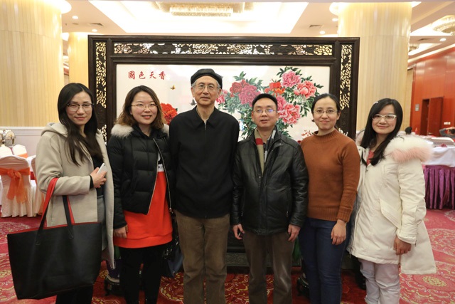 圖8、出席團(tuán)拜會(huì)的兩院院士及夫人合影。左起:趙伊君院士夫人、趙伊君、金國(guó)藩、金國(guó)藩院士夫人段老師、許祖彥院士夫人劉老師、許祖彥、簡(jiǎn)水生、周立偉、周壽桓。