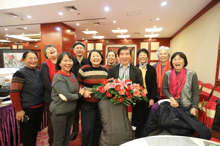 圖24、團(tuán)拜日當(dāng)天恰逢原科技部高新司孫忠發(fā)處長(zhǎng)生日,首都光學(xué)界的同仁向他表示誠(chéng)摯熱烈的祝福!圖為孫忠發(fā)處長(zhǎng)(前排左三)和夫人(左二)與大家合影。