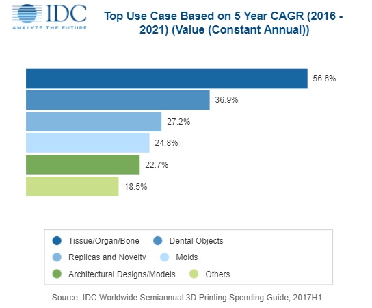 此次IDC國際分析師團隊考察了歐洲,亞太地區(qū)和美國等9個地區(qū)的主要市場。在3D打印三大領(lǐng)域中,硬件將達到69億美元,材料達到67億美元,而軟件的增長速度將低于其他市場。