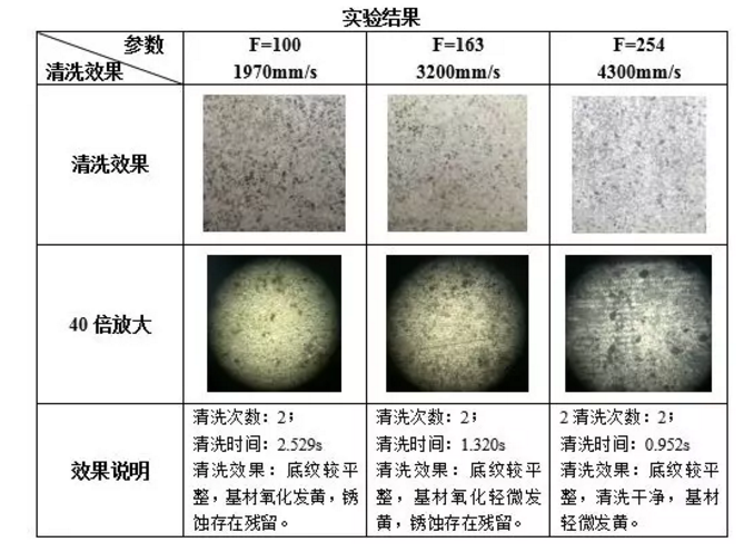 (2)該測試表明,功率密度為4.5E+07 w/cm2,六次清洗不能使銹層清洗干凈,繼續(xù)清洗,對于該厚度銹層,可粗略認為該功率密度附近為銹層清洗閥值下限。