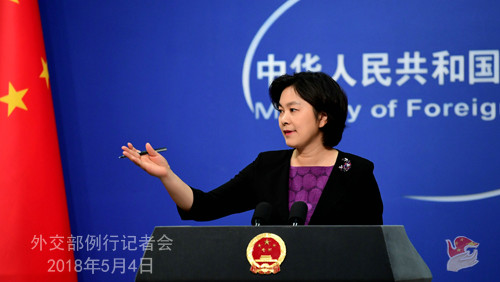 2018年5月4日,外交部發(fā)言人華春瑩主持例行記者會。(外交部網(wǎng)站)