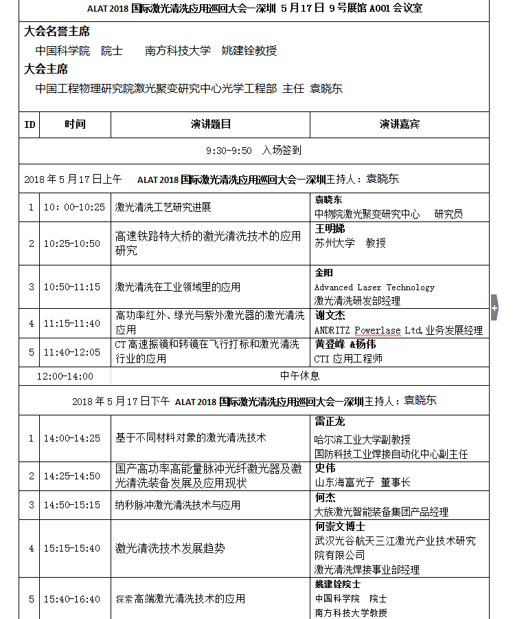 ALAT 2018國際激光清洗應用巡回大會—深圳