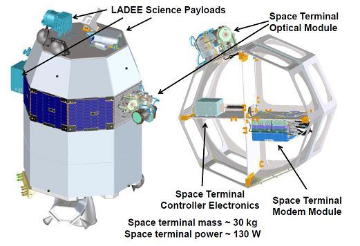 2005年,NASA委托MIT林肯實(shí)驗(yàn)室開(kāi)始進(jìn)行月球激光通信演示驗(yàn)證試驗(yàn)(Lunar Laser Communication Demonstration,LLCD)的研制,首次嘗試地基接收器與月球軌道器之間的高速激光通信。2013年,月球大氣與塵埃環(huán)境探測(cè)器(LunarAtmosphere and Dust Environment Explorer,LADEE)攜帶了LLCD通信終端發(fā)射升空。