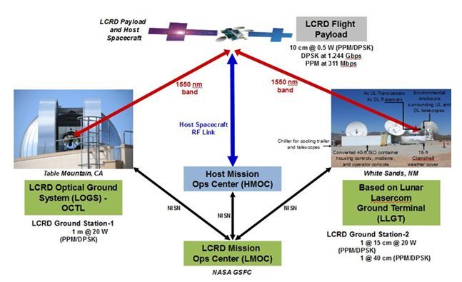 LLCD包括:星上終端(Lunar Laser Communication Space Terminal, LLST )、地面終端(Lunar Laser Communication GroundTerminal, LLGT),以及操作中心(Lunar Laser CommunicationOperation Center,LLOC)。