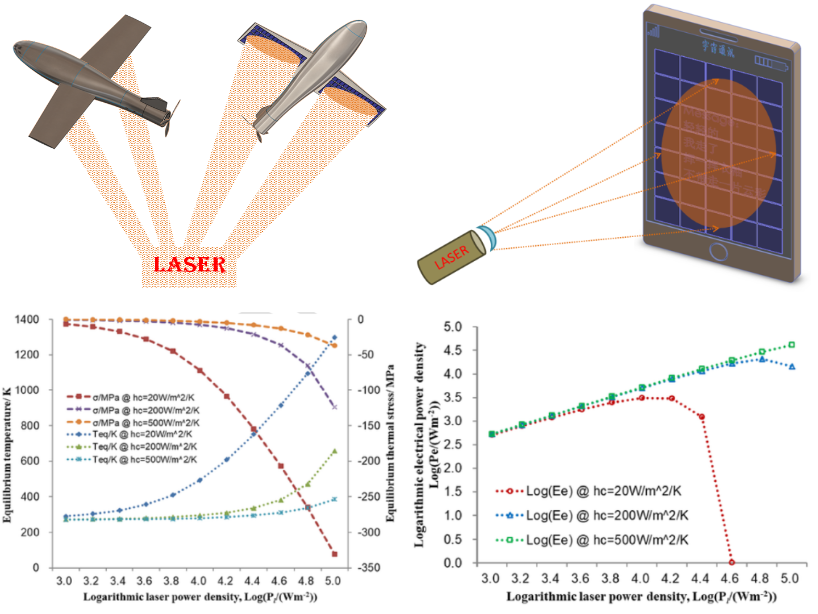 激光充能技術(shù)是指利用激光束和光電池實現(xiàn)遠(yuǎn)距離、無線充電的技術(shù),可應(yīng)用于無人機續(xù)航和便攜式電器充電等。該技術(shù)關(guān)鍵在于高亮度激光輻照環(huán)境的光電轉(zhuǎn)換效率和穩(wěn)定性,因為激光輻照光電池的光電轉(zhuǎn)換過程總是伴隨著熱耗散,熱耗散引起的材料升溫和熱應(yīng)力又會通過若干機制(改變材料帶隙、縮短載流子壽命等)降低光電效率,更多光能耗散成熱能,溫升/熱應(yīng)力進(jìn)一步加劇,這種耦合行為甚至?xí)?dǎo)致光電池暫時或永久失效。