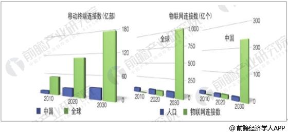 2010-2030年全球和中國(guó)移動(dòng)終端及物聯(lián)網(wǎng)連接數(shù)增長(zhǎng)趨勢(shì)