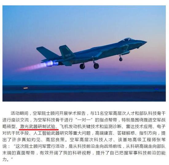 中國空軍10名院士促殲20升級 或包括激光武器試驗