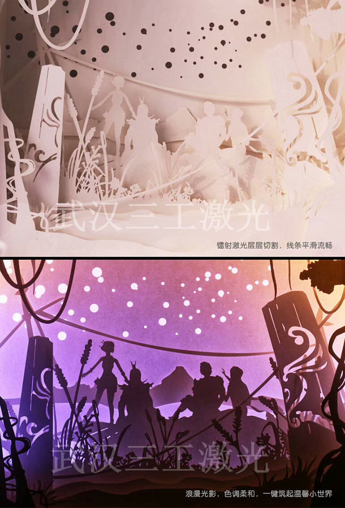 武漢三工激光紙張激光鏤空機(jī),從根本上打破了傳統(tǒng)紙張模切技術(shù)局限性,激光鏤空機(jī)進(jìn)行雕刻加工無需開刀模,圖案形狀可任意設(shè)計(jì),可通過繪圖軟件設(shè)計(jì)好圖案導(dǎo)入操作系統(tǒng),幾秒至十幾秒的時(shí)間一幅精美的鏤空圖案就誕生了。并且激光鏤空機(jī)速度快、切口平整、線條細(xì)膩、精細(xì)度高(可達(dá)0.01mm)、切口漂亮無碳化痕跡。激光鏤空雕刻本身就具有很強(qiáng)的立體感,也經(jīng)常被用于立體紙模拼圖、立體賀卡、立體書籍以及各類剪紙工藝品等行業(yè)的加工。下面呈上一些樣品工大家賞析!