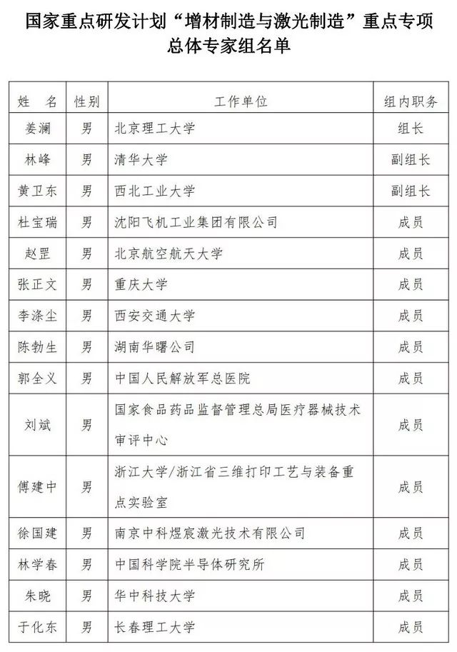 近日,新改版的科技部高技術(shù)中心官網(wǎng)更新了增材制造與激光制造重點專項等17個國家重點研發(fā)計劃重點專項的總體專家組名單,以下是
