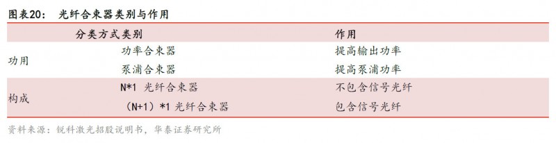 光纖合束器主要作用是進行光束合成增大輸出功率。目前國內(nèi)主要激光器制造商銳科與創(chuàng)鑫都已掌握合束器制造核心技術(shù)并實現(xiàn)規(guī)?;a(chǎn),但是國內(nèi)廠商在輸出功率上與國外龍頭公司Coherent、IPG等仍有差距。