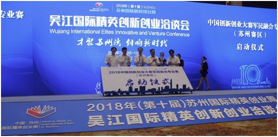 中國(guó)創(chuàng)新創(chuàng)業(yè)大賽軍民融合專業(yè)賽(蘇州賽區(qū))啟動(dòng)儀式和發(fā)布會(huì)現(xiàn)場(chǎng)