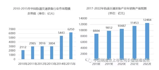 “十三五”期間,我國軌道交通裝備產(chǎn)業(yè)將得到快速發(fā)展,預(yù)計將保持10%左右的增長速度,到2022年其年銷售產(chǎn)值將達到1.2萬億元以上,發(fā)展空間巨大。
