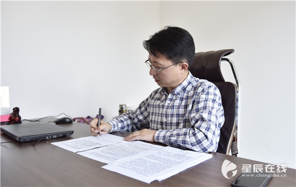 (羅鐵庚正在辦公。)