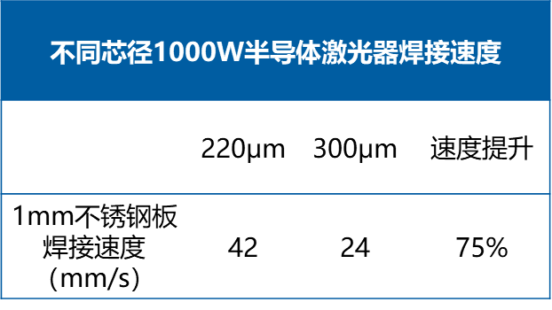 使用220 μm的高亮度半導(dǎo)體激光器,比上代產(chǎn)品的焊接速度可提升75%。