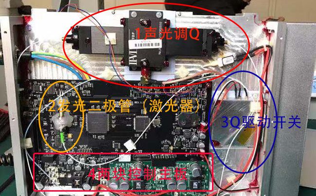 激光器的模塊包含了發(fā)光二極管、聲光調(diào)Q、Q開光、PCB電路板、風(fēng)扇、散熱模塊、光纖、溫度反饋控制測量模塊、擴(kuò)束模塊、傳輸光纖等等,這里只是作為滿足大家的好奇心,不做任何技術(shù)探討。另外需要聲明此激光器的拆卸只是網(wǎng)絡(luò)流傳中的某一家激光器維修記錄,元祿光電不擔(dān)負(fù)拆卸他人激光器的責(zé)任。