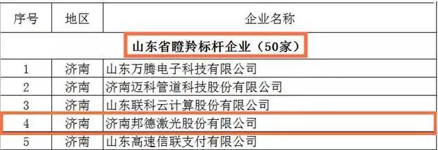 省工信廳公布2018年度山東省瞪羚標(biāo)桿企業(yè),邦德激光入選