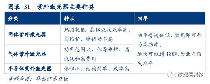 根據工作物質不同,紫外激光器可進一步細分為固體紫外激光器、氣體紫外激光器、半導體紫外激光器等,其特性與應用領域也不盡相同。
