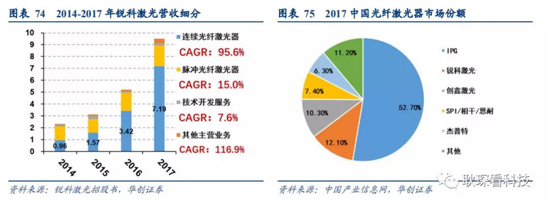銳科激光是中國光纖激光器龍頭。國內第一家專門從事光纖激光器及核心器件研發(fā)并實現規(guī)模化生產的企業(yè),由航天三江集團控股(45.33%)。光纖激光器系列產品占其營收達90%以上,是國內光纖激光器領域產品種類豐富、覆蓋面廣的企業(yè)。為解決產能瓶頸、加大研發(fā)投入鞏固技術實力、提升生產自動化水平及管理水平,銳科激光于2018年6月25日在深交所創(chuàng)業(yè)板上市。