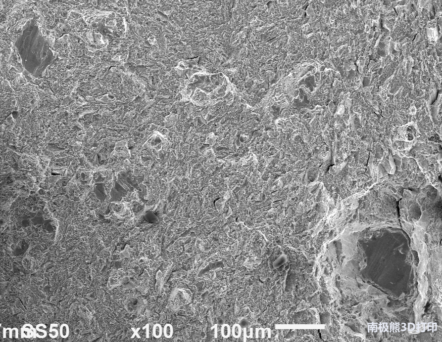 在兩個激光器的3D打印試驗中,研究人員仍然觀察到下風(fēng)向樣件斷裂表面存在一些缺陷,但是相比四個激光器試驗中的下風(fēng)向樣件,其缺陷數(shù)量要少得多,在同樣的直徑范圍內(nèi),該試驗結(jié)果是10個缺陷,而之前的試驗中觀察到的缺陷數(shù)量為100個。與四激光器試驗樣件相比,缺陷的尺寸也小得多,在本試驗中缺陷尺寸小于等于150微米,之前試驗中尺寸近500微米。