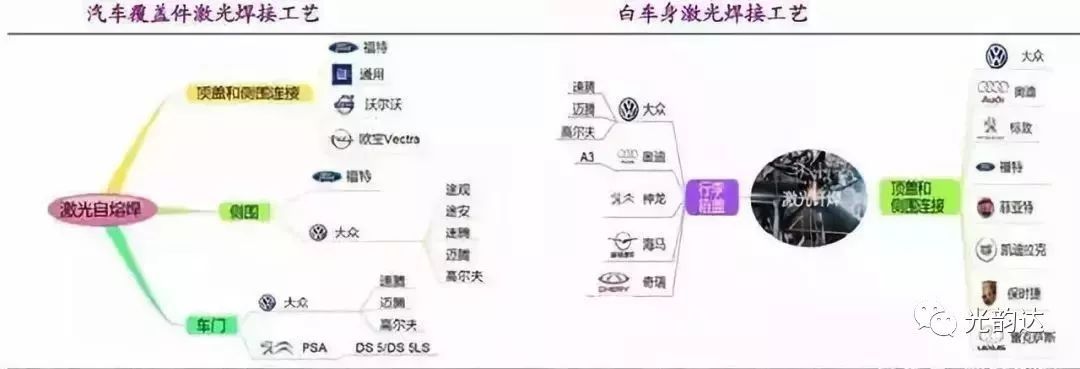 激光焊接工業(yè)在汽車工業(yè)領(lǐng)域得到重視和廣泛應(yīng)用,其中汽車覆蓋件是激光焊接五大類之一,激光焊接運(yùn)用于汽車客運(yùn)降低車身重量、提高車身裝備精度、增加車身剛度、降低汽車車身制造過(guò)程中的沖壓和裝配成本,20世紀(jì)90年代BMW公司、德國(guó)大眾利用激光焊接中長(zhǎng)度分別達(dá)12M、70M。隨后奧迪、速騰、高爾夫、豐田、寶馬、奔馳等公司陸續(xù)采用激光焊接技術(shù)。未來(lái)隨著動(dòng)力電池的需求不斷擴(kuò)大,其焊接業(yè)務(wù)將迎來(lái)新的成長(zhǎng)空間。