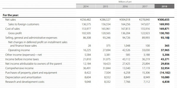 從以下圖表可以看到,AMADA從2014至2016年連續(xù)穩(wěn)步增長,然而在2017年業(yè)績(jī)下滑,到2018年才重新恢復(fù)到前年的業(yè)績(jī)水平。
