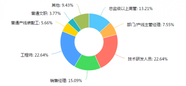 如圖二所示,技術(shù)研發(fā)人員和工程師積極參與了本次的問卷調(diào)查,各占22.6%,其次是銷售經(jīng)理,占15%。