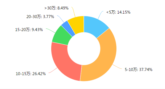 如圖四所示,回顧2018年,2018年下半年,激光行業(yè)發(fā)展也稍微滯后,各行業(yè)爆發(fā)裁員潮。全年薪酬水平處于5-10萬的調(diào)研者最多,約占總?cè)藬?shù)的38%,其次是處于10-15萬水平,約占26%??傮w薪酬水平較低。對大部分激光行業(yè)從業(yè)者來說,2018年的薪酬漲幅可能并未達(dá)到他們的預(yù)期。