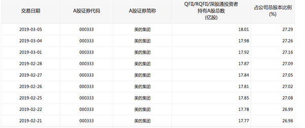 特別值得注意的是,除了大族激光,截至3月5日,外資持有美的集團(tuán)(000333)27.29%股份,距離28%僅一步之遙。