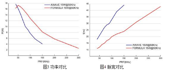 1.頻率更高。最高頻率可達(dá)300K,在200K時(shí)最大功率有5.8W,300K時(shí)最大功率有2.6W。與AWAVE 15W@50KHz激光器功率的對(duì)比可見(jiàn)圖3。