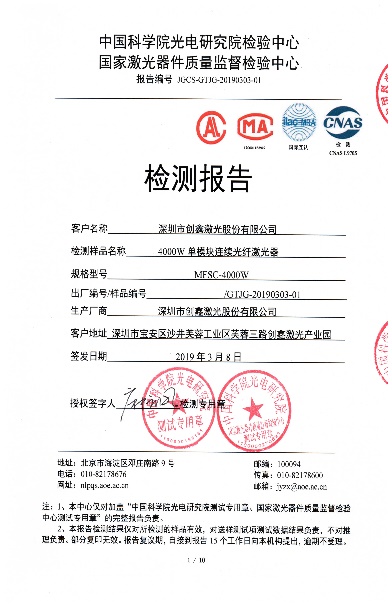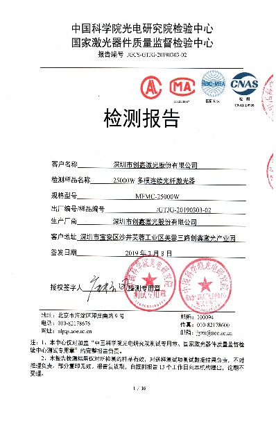 25000W多模連續(xù)光纖激光器”、“4000W單模塊連續(xù)光纖激光器”檢測(cè)報(bào)告