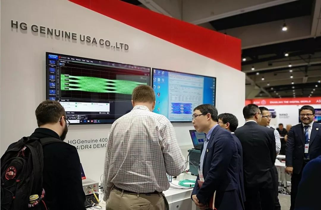 在OFC2019現(xiàn)場,筆者看到,以寶石紅為主色調(diào)的華工正源展臺人流如織,北美主要互聯(lián)網(wǎng)廠商、設(shè)備商紛紛駐足正源展臺進行技術(shù)交流。