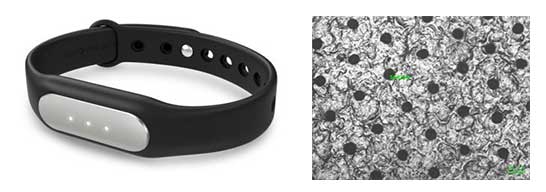 大家都知道小米手環(huán)有3顆LED指示燈,可以顯示藍(lán)色,綠色,紅色和橙色,可這光是怎么透出來(lái)的呢? 答案就是激光打孔技術(shù)。激光打