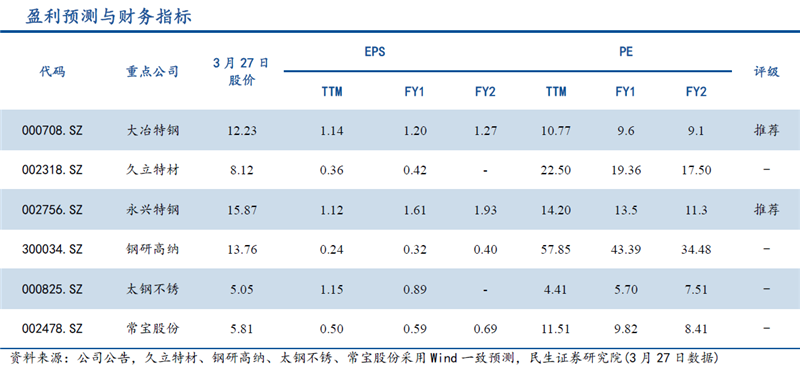 民生證券認為,特鋼公司,尤其高端特鋼產(chǎn)品端相對穩(wěn)定,盈利也較為穩(wěn)定,疊加特鋼公司具有的穩(wěn)定分紅的特征,特鋼估值一般高于普鋼公司,多數(shù)存在一定估值溢價現(xiàn)象。