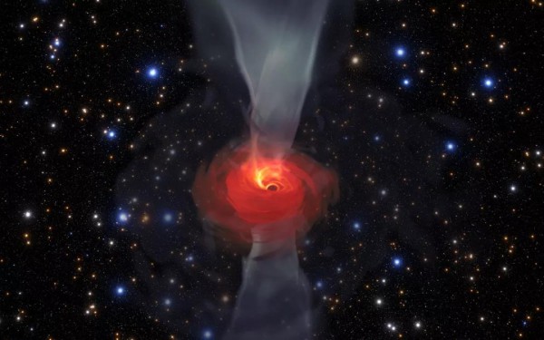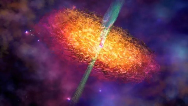 這幅藝術家的印象描繪了一個黑洞的周圍環(huán)境,顯示了一個由過熱等離子體和相對論射流組成的吸積盤。資料來源:Nicolle R. Fuller/NSF
