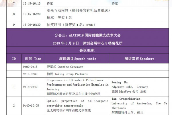 5.ALAT 2019中國超快激光微納加工大會(huì)
