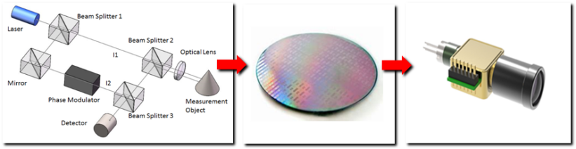基于這樣的現(xiàn)狀,摯感光子依靠核心團(tuán)隊(duì)在光電通信領(lǐng)域的深厚技術(shù)積累,利用集成光學(xué)芯片技術(shù)的優(yōu)勢(shì)開發(fā)了一種小型激光傳感平臺(tái),將這兩種主流的傳感功能結(jié)合在一個(gè)光學(xué)平臺(tái)上,可實(shí)現(xiàn)位移測(cè)量和振動(dòng)測(cè)量等多種功能,在保持高精度測(cè)量的同時(shí)還極大降低了模塊尺寸和成本。