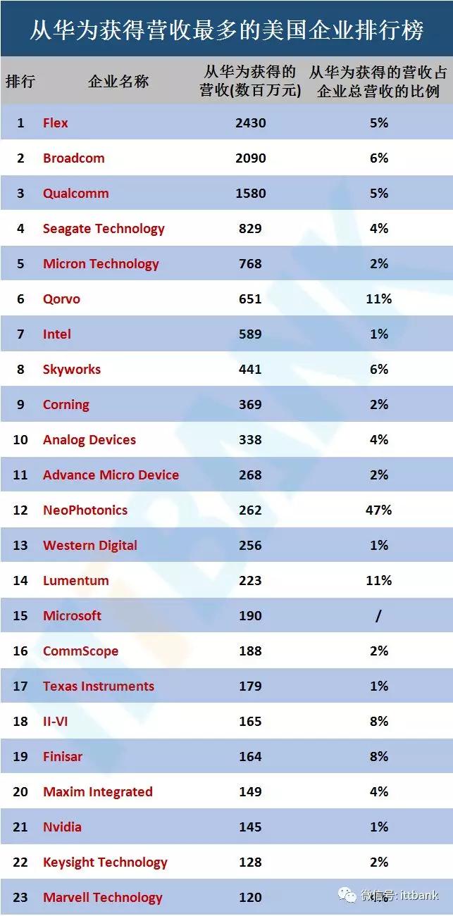 從上圖可知,偉創(chuàng)力(Flex)作為全球第二大的代工廠,華為很大一部分智能手機、筆記本電腦訂單是交給偉創(chuàng)力代工,如果華為真的被禁止了,對于Flex來說,損失應(yīng)該是最大的。其次是博通、高通等等企業(yè)。