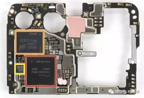 ●SKhynix H9HKNNNFBMAU LPDDR4X內(nèi)存,通過POP工藝堆疊在華為麒麟980處理器上方