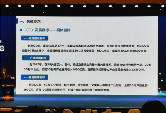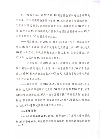 網(wǎng)絡(luò)建設(shè)方面。到2020年,建成5G基站3萬個,實(shí)現(xiàn)設(shè)區(qū)市城區(qū)5G信號全覆蓋、重點(diǎn)區(qū)域連片優(yōu)質(zhì)覆蓋。到2022年,建成5G基站8萬個,實(shí)現(xiàn)縣城及重點(diǎn)鄉(xiāng)鎮(zhèn)以上5G信號全覆蓋。到2025年,實(shí)現(xiàn)所有5G應(yīng)用區(qū)域全覆蓋。在產(chǎn)業(yè)發(fā)展方面。到2022年,在5G關(guān)鍵芯片、器件、模組及終端上突破一批關(guān)鍵技術(shù),培育10個特色優(yōu)勢產(chǎn)品、20家骨干企業(yè),實(shí)現(xiàn)5G相關(guān)產(chǎn)業(yè)業(yè)務(wù)收入4000億元,支撐數(shù)字經(jīng)濟(jì)核心產(chǎn)業(yè)業(yè)務(wù)收入2.5萬億元。
