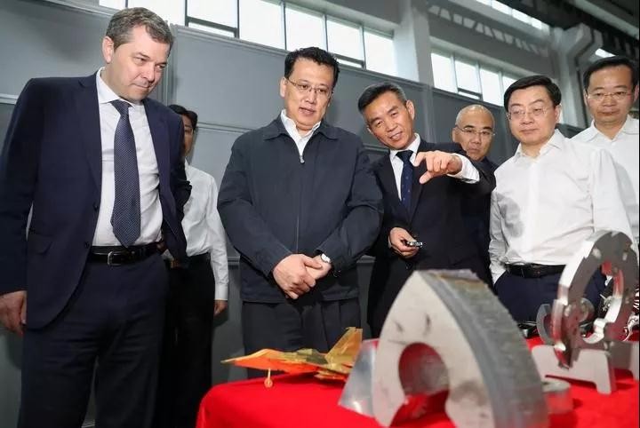 在Martino先生和吳總的帶領下,袁省長參觀了奔騰激光開發(fā)的遠程運維系統(tǒng)、高功率激光切割機、激光切管機、散熱器激光焊接機等產(chǎn)品。在一個大型構件前,吳總告訴袁省長公司參與了中國商飛C919、C929某特殊材料的激光加工裝備的研發(fā)工作。在20KW激光切割機前,技術人員向袁省長演示了30mm不銹鋼切割、25mm碳鋼切割、薄板快速切割等,充分展示奔騰激光在超高功率段與國際領先水平并駕齊驅(qū)的態(tài)勢。