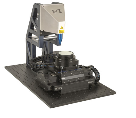 用激光切割晶圓時,必須具有高精度的直線度、平整度和重復性。PI為這項任務提供了一個緊湊的,潔凈室兼容的設置,包括空氣軸承旋轉(zhuǎn)平臺和空氣軸承平面掃描儀平臺。