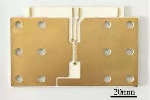 2)將銅箔在氮?dú)庵腥跹趸梢欢ê穸鹊腃u2O。兩者所起作用幾乎相同,第一種方法實(shí)用性更強(qiáng)。圖6顯示了本公司采用DBC技術(shù)制備的高功率IGBT模塊。