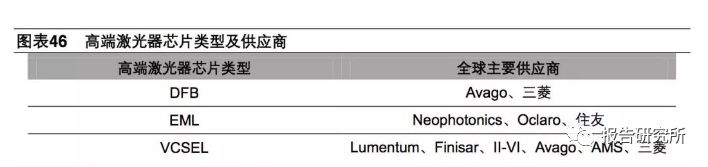 從目前DFB/EML/VCSEL三大高端激光器芯片市場來看,美國和日本光器件廠商仍然占據(jù)市場主導(dǎo),包括Finisar、Avago、三菱、Lumentum、II-VI等公司。2018年,