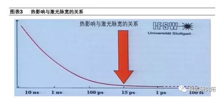 超快激光是精密加工領(lǐng)域新一代主流技術(shù):超快激光器是指輸出激光的脈沖寬度在皮秒(10-12秒)級別、或小于皮秒級別的脈沖激光器,根
